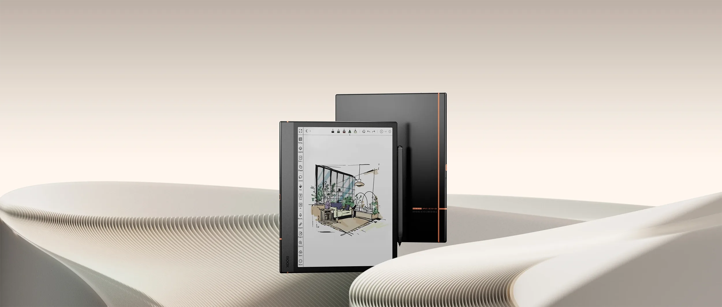 Boox Note Air 4C zachowuje tradycyjną, prostą formę z poprzednich generacji, podkreślając ją eleganckim paskiem z tyłu notatnika. Dzięki szerokiej i ergonomicznej ramce, 5,8 mm grubości i niewielkiej wadze 420 g tablet jest poręczny, dobrze leży w dłoni i będzie towarzyszyć Ci w każdej podróży.
