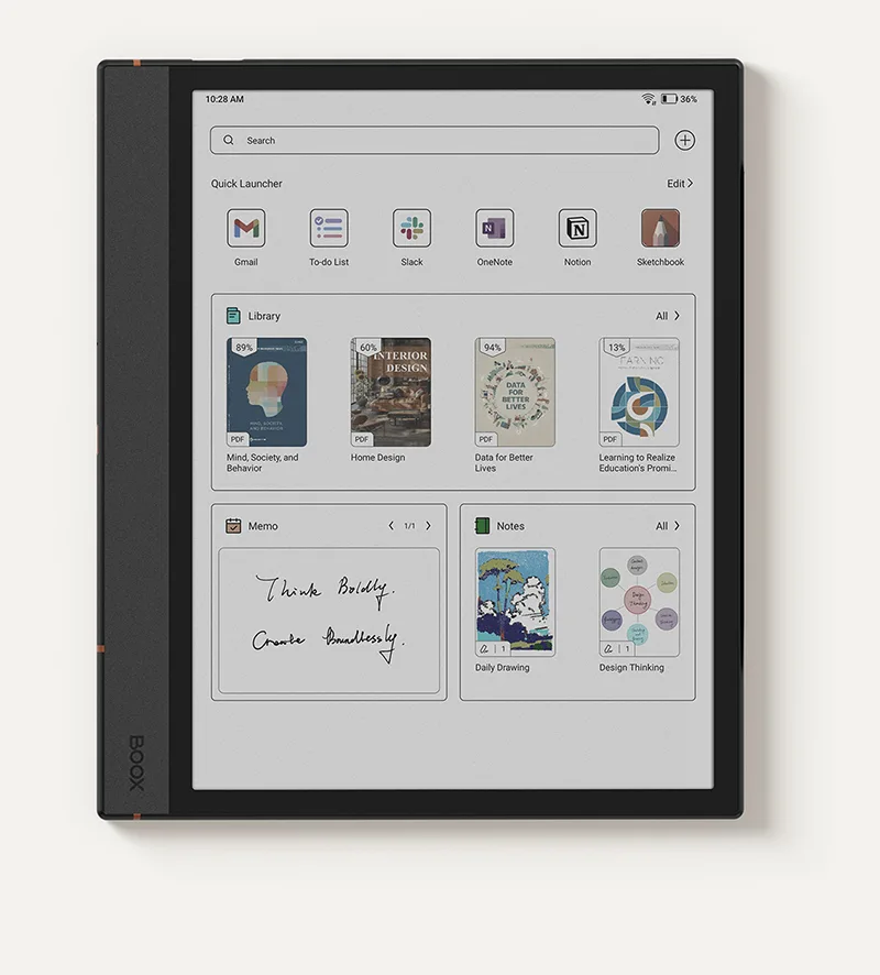 [1] Technologia BOOX Super Refresh (BSR) to innowacja wprowadzona przez firmę BOOX w 2022 roku w celu poprawy wydajności odświeżania i jakości obrazu na wyświetlaczach E Ink. Technologia BSR z czterema trybami odświeżania może sprawić, że obraz będzie działał płynnie lub zredukuje ghosting.