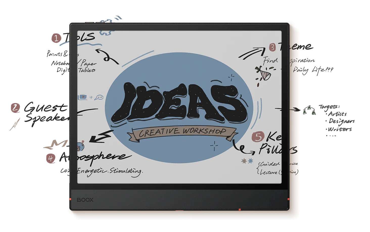 Uwolnij swojego wewnętrznego artystę dzięki rysikowi BOOX Pen3. W połączeniu z ulepszonym odwzorowaniem uczucia pisma po papierze Note Air5 C, oferuje bardziej realistyczne wrażenia podczas szkicowania i rysowania oferując wystarczające tarcie i opór.
