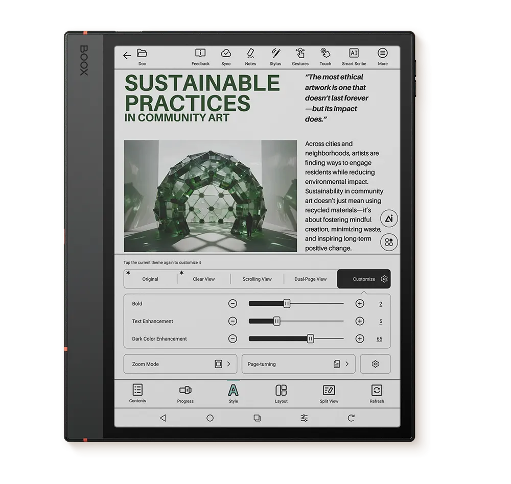 [7] Wstępne motywy czytania w NeoReader są dostępne zarówno dla formatów przepływowych e-booków, jak i PDF w najnowszym oprogramowaniu BOOX.