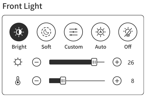 [3] E Ink ComfortGaze™ (przednie podświetlenie) zapewnia komfortowy obraz w dzień i w nocy. Użytkownik może dopasować jasność i temperaturę barwową do własnych preferencji. Nowy ekran i technologia podświetlenia mogą generować niewielki boczny cień; zwykle znika po korekcie jasności i temperatury barwowej. W razie pytań dotyczących technologii E Ink skontaktuj się z działem obsługi klienta.