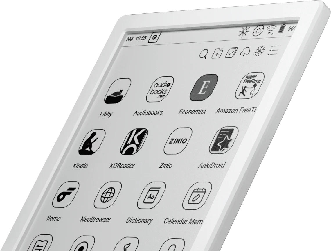 Wbudowana aplikacja do czytania NeoReader jest jedną z najlepszych aplikacji dostępnych na rynku. Z tym kieszonkowym czytnikiem e-ink doświadczysz niezapomnianych wrażeń z lektury ulubionych tytułów i setek aplikacji ze sklepu google play.