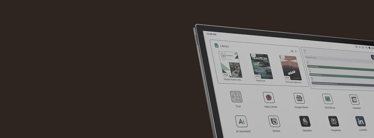 Dzięki wydajnemu, ośmiordzeniowemu procesorowi i 6 GB RAM, model Tab X C sprawnie przełącza się między zadaniami zawodowymi i prywatnymi. Technologia BOOX Super Refresh³ zapewnia płynne przeglądanie stron i pracę z wymagającymi plikami.