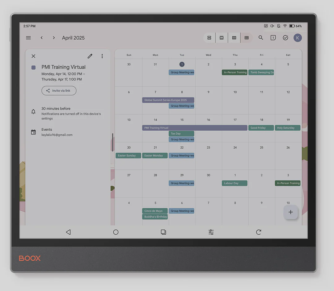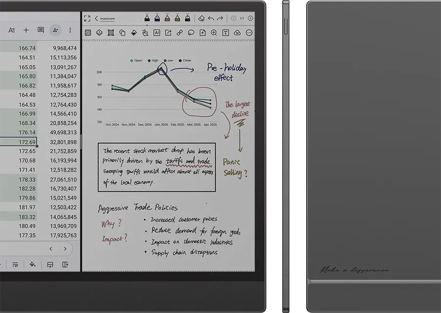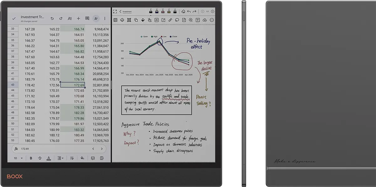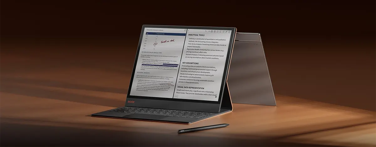 Łatwiejsza i skuteczniejsza analiza danych. Kolorowe wizualizacje sprawiają, że wykresy i zestawienia na 13,3-calowym ekranie Boox Tab X C stają się bardziej przejrzyste, a kluczowe informacje szybciej rzucają się w oczy.