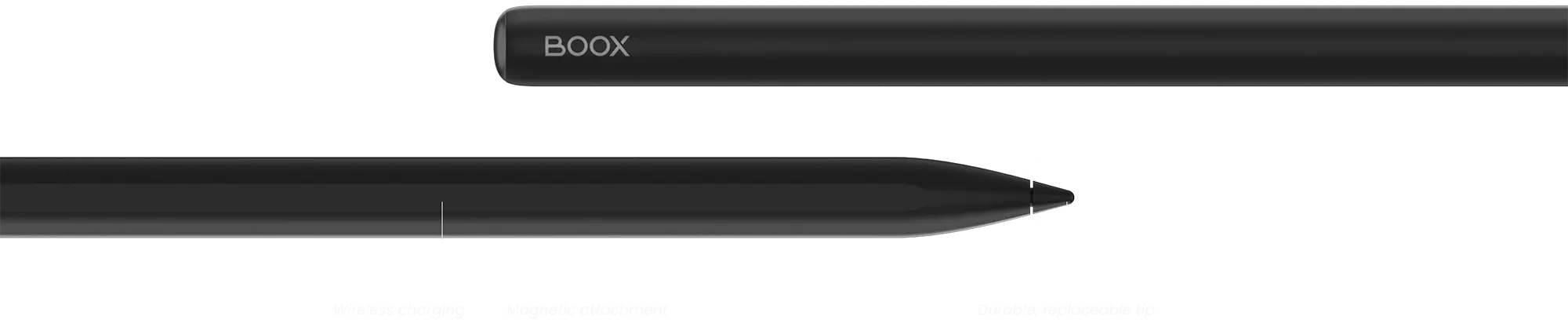 [2] Rysik Boox InkSpire to aktywne piórko, które łączy się bezpośrednio z modelem Tab X C bez łącza Bluetooth. Obsługuje ładowanie bezprzewodowe i magnetyczne mocowanie do tabletu. Dzięki technologii haptycznej reaguje na nacisk, zapewniając realistyczne wrażenia podczas pisania – jak na prawdziwym papierze.